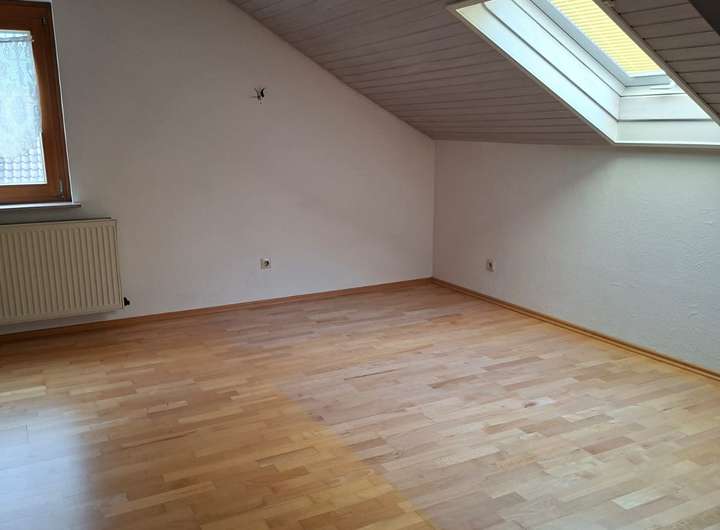 Vom FLUR aus gelangt man in einen ca. 27 m² großen WOHNRAUM mit Dach- und Giebelfenstern, heller Holzdecke und Echtholzparkett. Ein halbhoch gefliestes WC mit Waschbecken, Toilette, Bidet und ein davor liegendes ZIMMER mit denselben Bodenfliesen, einer Holzdecke und einem Dachfenster, sind ebenfalls über den Flur zugänglich. Ein nicht ausgebauter SPEICHER sowie ein weiteres Zimmer dienen als Abstellmöglichkeit.