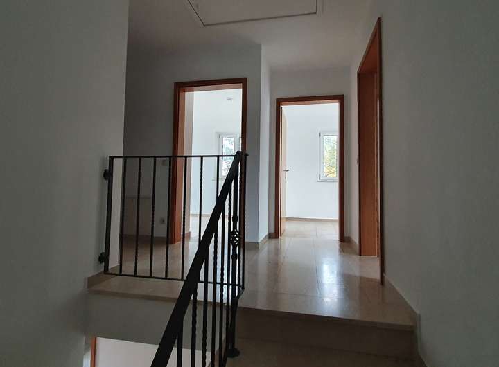 Alle Böden sind mit Fliesen belegt und im Erd- und Dachgeschoss mit Fußbodenheizung ausgestattet. Im Erdgeschoss wurden kürzlich weiße Fußbodenleisten angebracht.