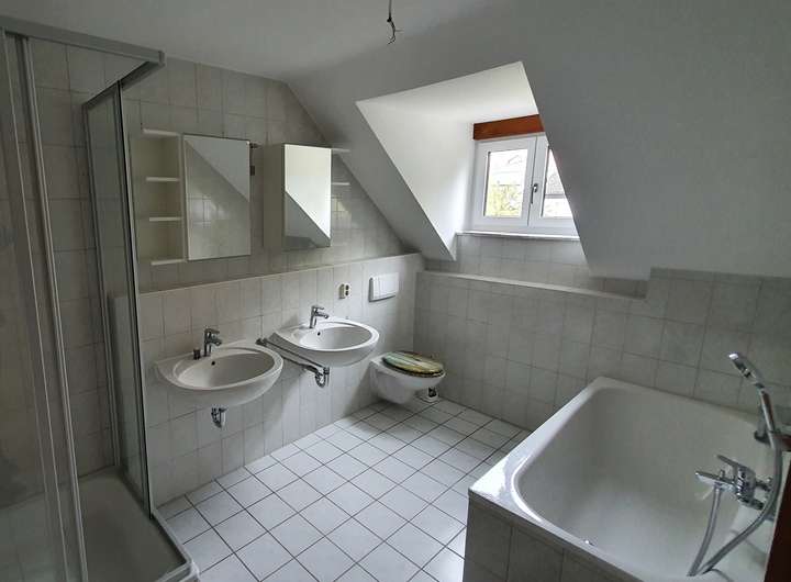 Im Dachgeschoss finden 3 Schlafzimmer, ein Badezimmer (mit Badewanne und Dusche) und ein weiterer Abstellraum Platz. Vom größten Zimmer aus hat man Zutritt auf den frisch sanierten und überdachten Südbalkon. Die beiden kleineren Zimmer wurden zuletzt mit zwei großen Dachflächenfenstern ausgestattet.