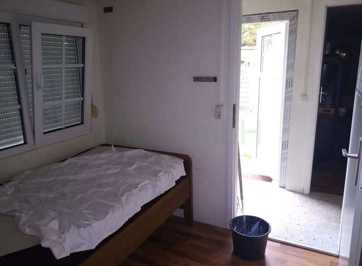 Es umfasst etwa 500 m² und beinhaltet einen Bungalow mit Bad, einer kleinen Küchenzeile, einem Wohn- und Essbereich sowie einem Schlafzimmer.