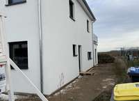 Es handelt sich um eine von Fischer-Bau GmbH neu massiv gebaute Doppelhaushälfte mit ausgebautem Obergeschoss. Die Doppelhaushälfte wird zum Jahresende 2025 fertig erstellt.