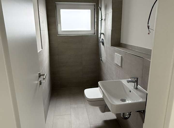 - Geflieste Duschen mit Edelstahlablaufrinne im WC und Bad