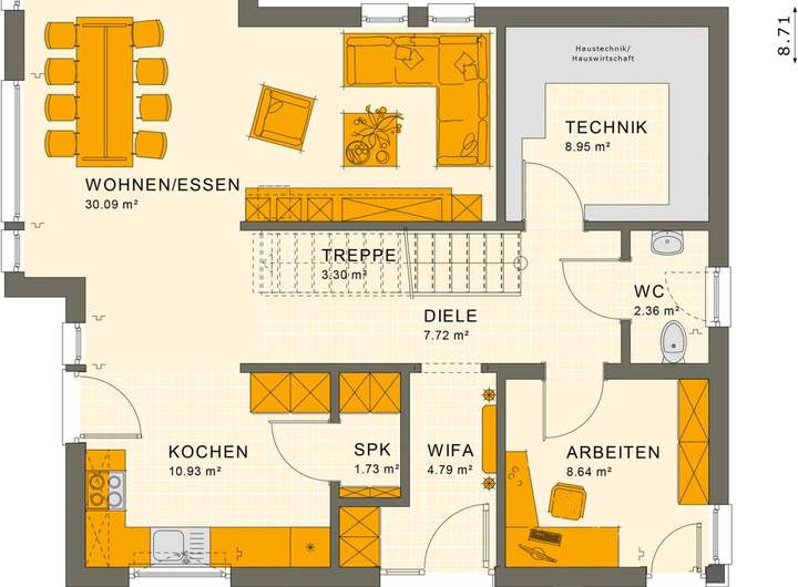 Die ideale Ausbaustufe für Heimwerker: außen perfekt, innen mit kompletter Heizungs-, Elektro- und Sanitärinstallation - bis zum Estrich alles dabei.