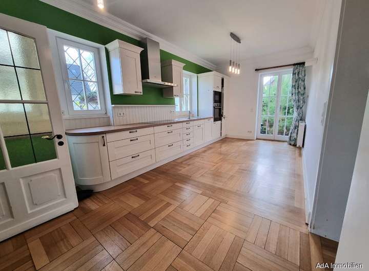 Ein Haus mit Charakter, liebevoll gepflegt und gehegt, sucht Mieter die es schätzen. Dieses neue zu Hause befindet sich am Ende einer Sackgasse, nahe der Kempener- Allee, in begehrter Lage. Über Eingangsstufen gelangen Sie zunächst in die Eingangsdiele, mit schönem Garderobenbereich und WC- Zugang. Die große Wohnküche ( Einbauküche ist vorhanden) bietet ausreichend Platz für einen Essbereich, sowie Zugang auf die seitlich gepflasterte Terrasse. Weiter geht es in den wunderbaren, über 50m² großen Wohn- und Essbereich mit offenem Kamin und mehrfach Zugang auf die Hauptterrasse. Ein kleinerer Raum diente in den letzten Jahren der Hauswirtschaft. Ein Schlaf- Gäste- oder Büroraum im Erdgeschoss wurde mit einem Waschtisch und einem eigenen kleinen Duschbereich versehen. Auch von hier aus gelangen Sie in das Gartengrundstück. Die Hauptschlafbereich befinden sich im großzügigen Dachgeschoss. Hier befinden sich nochmals 2 Kinderzimmer und das schöne Kinderbad, ein großzügiger Bereich zum Abstellen und der über 20m² große Elternbereich mit eigenem Bad und Zugang auf einen kleinen Balkon. Das Haus unterkellert und bietet neben einer Außentreppe die üblichen Hauswirtwirtschafts- Lager- und Technikflächen, als auch einen Hobbyraum ( Party). Eine kleinere Garage wurde bisher zum Abstellen von Fahrrädern und dergleichen genutzt, die zweite Garage diente dem PKW.