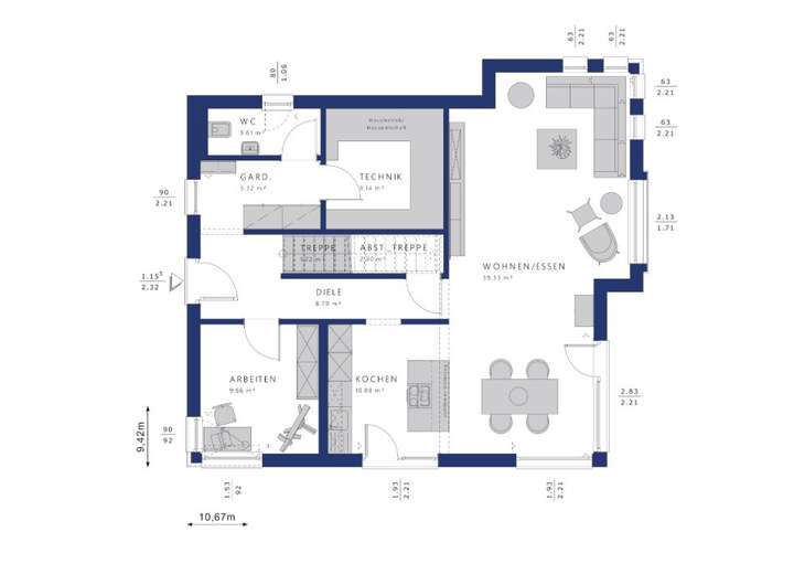 Die Architektur folgt einer klaren, zeitgemäßen Designphilosophie, die Ihnen maximale Gestaltungsfreiheit lässt. Mit verschiedenen Dachformen und einer großen Auswahl an Architektur-Bauteilen wird jedes Bien-Zenker Haus zu einem einzigartigen Unikat. Sie sind der Designer Ihres Zuhauses - von der Grundkonzeption bis hin zu individuellen Details.