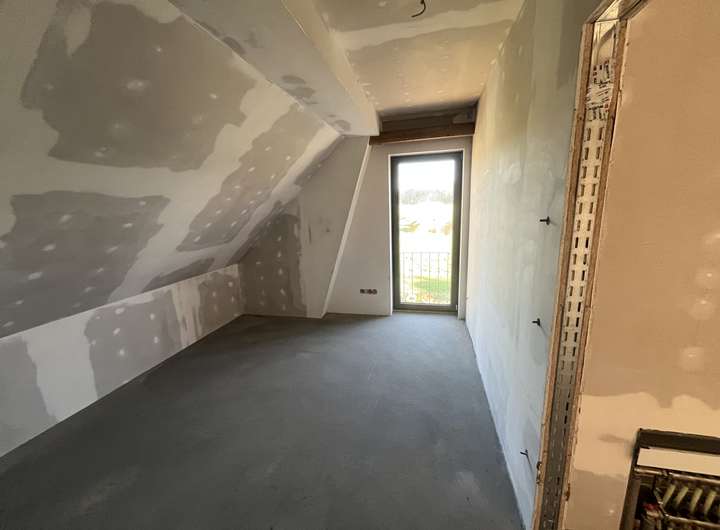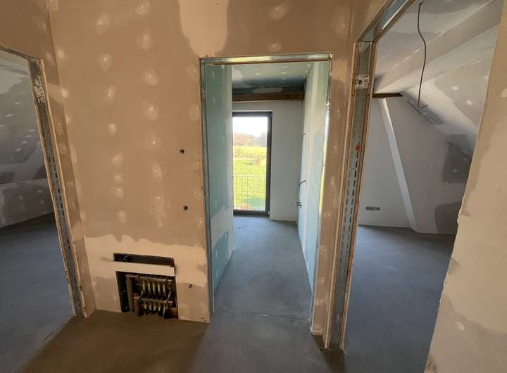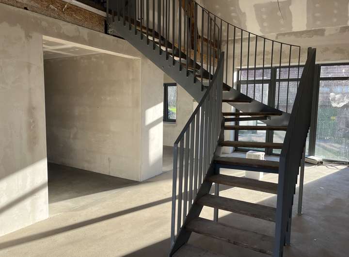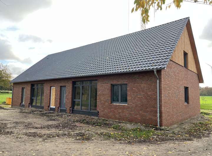 Auf einem Hof außerhalb von Heiden wurde eine Scheune mit viel Liebe zum Detail in zwei exklusive Wohneinheiten umgebaut. Durch vollverglaste ehemalige Scheunentore strömt Tageslicht in die großzügigen Wohnräume und schafft eine helle und freundliche Atmosphäre. Sichtbare alte Holzbalken verleihen dem modernen Ausbau einen authentischen, rustikalen Charme. Der offen gestaltete Küchen- und Essbereich beeindruckt zudem mit einem rund 5,80 Meter hohen Galerieraum, der dem Wohnen eine besondere Großzügigkeit verleiht.