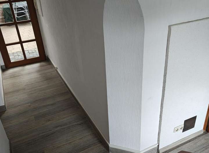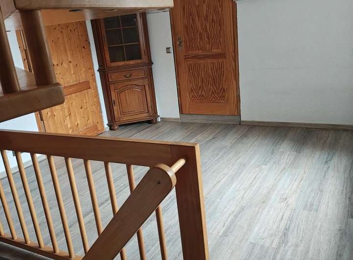 In den unteren Räumen wurde Vinylboden über Fliesen bzw. im Wohnzimmer über Holzboden verlegt.