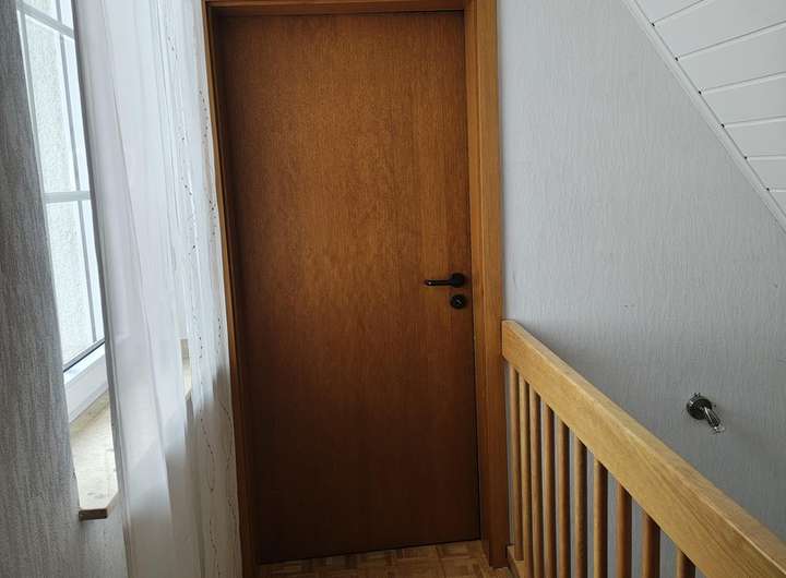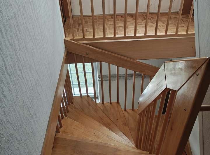 In den oberen Räumen ist Parkett verlegt, welches 2021 geschliffen und neu lasiert wurde.