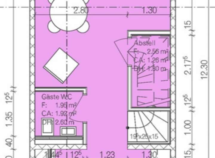 Ein Gäste-WC, eine kleine Abstellkammer sowie Garderobe und Haustechnik gehören ebenfalls dazu.