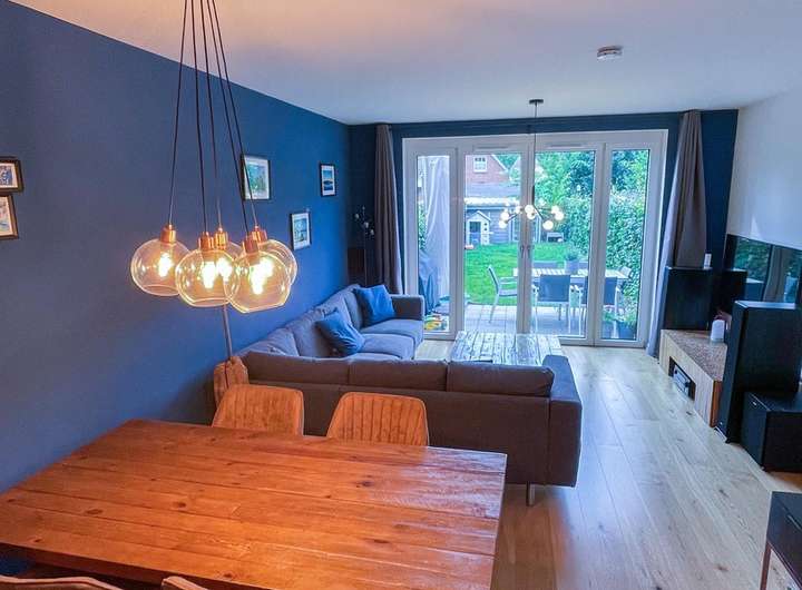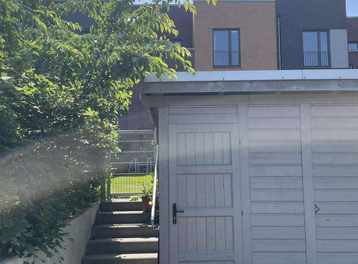 Vom offenen Küchen/Wohnbereich im Erdgeschoss kann man direkt durch die großzügigen Terrassenflügeltüren in den schönen Garten eintreten. Hierzu gehört auch ein Gartenhäuschen, welches praktische Nutzfläche und Platz für Fahrräder bietet.