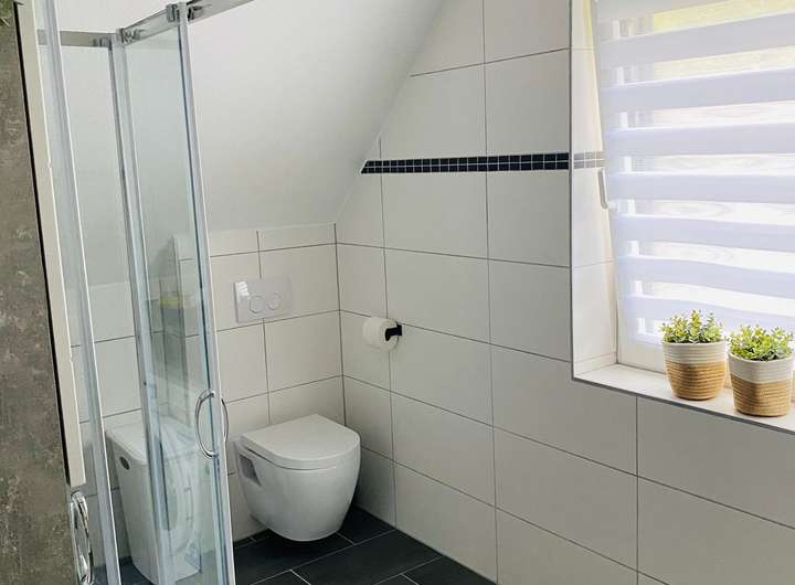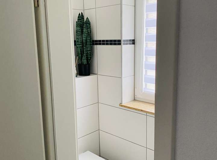 Komplett gefliest, Fußbodenheizung, neue Fenster & Terrassentür