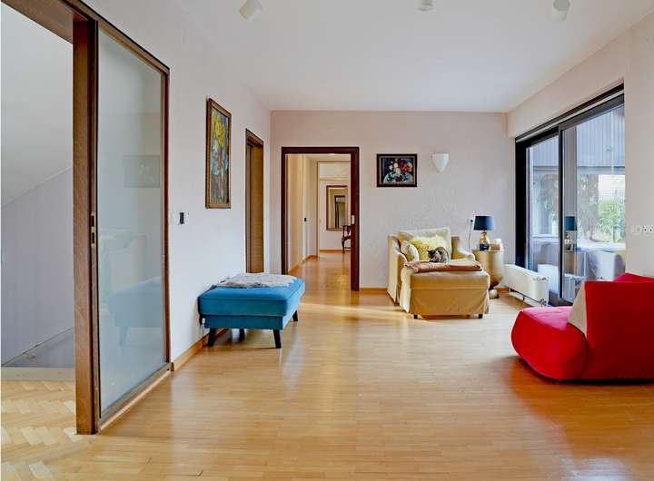Dieses außergewöhnliche Anwesen aus dem Jahr 1975 empfängt seine Besucher mit einem spürbaren Gefühl von Großzügigkeit, Ruhe und Wertigkeit. Schon beim ersten Schritt ins Haus wird deutlich, dass hier nicht nur Wohnraum geschaffen wurde, sondern ein Ort, an dem sich Leben, Arbeiten und Entspannen auf harmonische Weise miteinander verbinden lassen. Die durchdachte und zugleich flexible Raumstruktur eröffnet vielfältige Perspektiven – sei es für eine große Familie, für Freiberufler mit gehobenem Anspruch oder für ein modernes Mehrgenerationen-Konzept. Das Erdgeschoss sowie das erste Obergeschoss sind jeweils als eigenständige Wohneinheiten konzipiert und rechtlich ausgewiesen. Ergänzt wird dieses Angebot durch einen großzügigen, lichtdurchfluteten Bereich im Obergeschoss, der sich ideal für eine gewerbliche Nutzung wie Büro, Praxis oder Kanzlei eignet und ebenfalls separat geführt wird.
