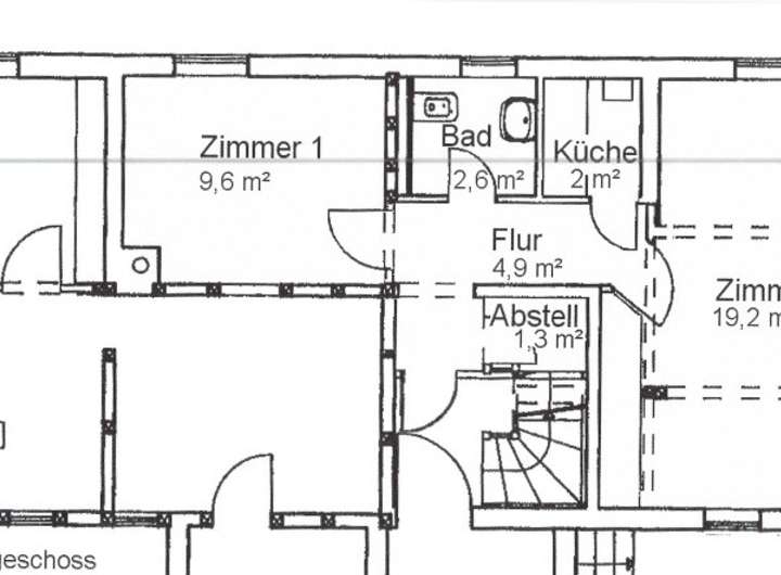 Altbau: 2,5-zimmer-Wohnung Küche Bad, ca. 62m²
