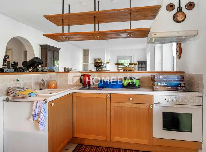 Auch die Ausstattung des Hauses lässt keine Wünsche offen: Die Wohnräume sind mit Echtholzböden und Fliesen belegt, praktische Einbauschränke bieten zusätzlichen Stauraum. Über den Erdtank wird die Heizung, die die gesamte Immobilie beheizt, mit Öl versorgt. Die Kunststofffenster mit Zweifachverglasung sorgen für gute Wärmedämmung.