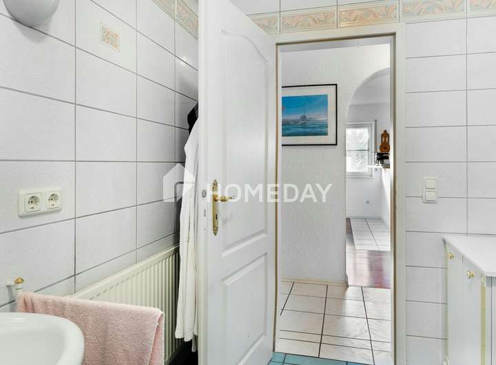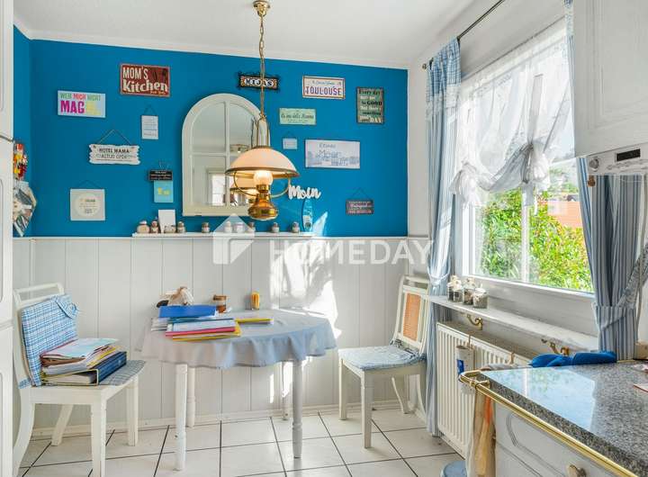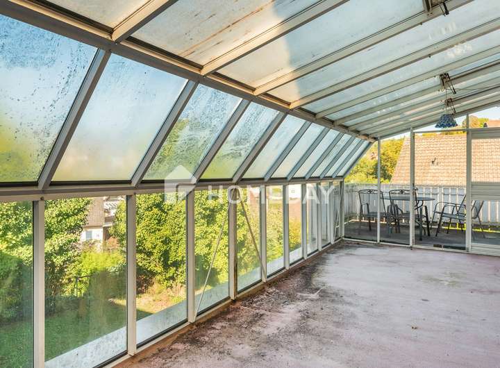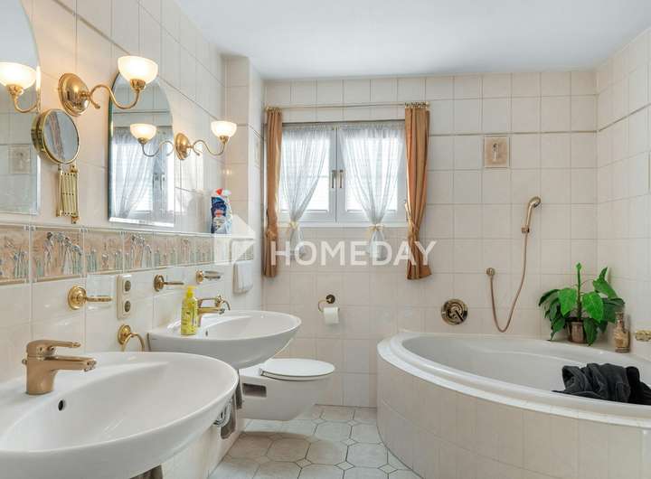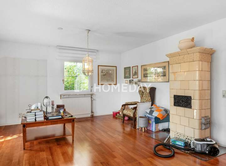 Das Innere des Hauses überzeugt mit einer gemütlichen Atmosphäre. Ein besonderes Highlight sind der antike Kamin, der über 100 Jahre alt ist und als antikes Einzelstück den Wohnbereich bereichert sowie der offene Kamin im Untergeschoss. Der großzügige Wohnraum mit Kamin lädt zum Verweilen ein, während die helle Einbauküche mit hochwertigen Markengeräten keine Wünsche offen lässt. Die Tageslichtbäder sind komfortabel ausgestattet, unter anderem mit einer Eckbadewanne und einer Dusche. Ein Wintergarten mit etwa 15 Quadratmetern schafft einen lichtdurchfluteten Rückzugsort.
