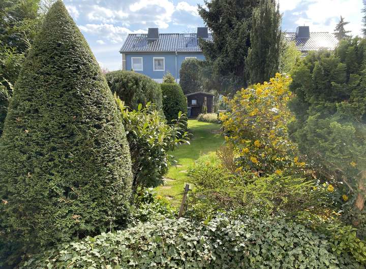 Über einen kleinen Vorgarten gelangt man zum Hauseingang. Der Garten hinter dem Haus verfügt zusätzlich über einen separaten Zugang, was ihn besonders praktisch und vielseitig nutzbar macht.