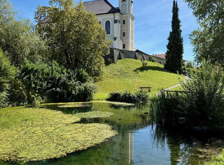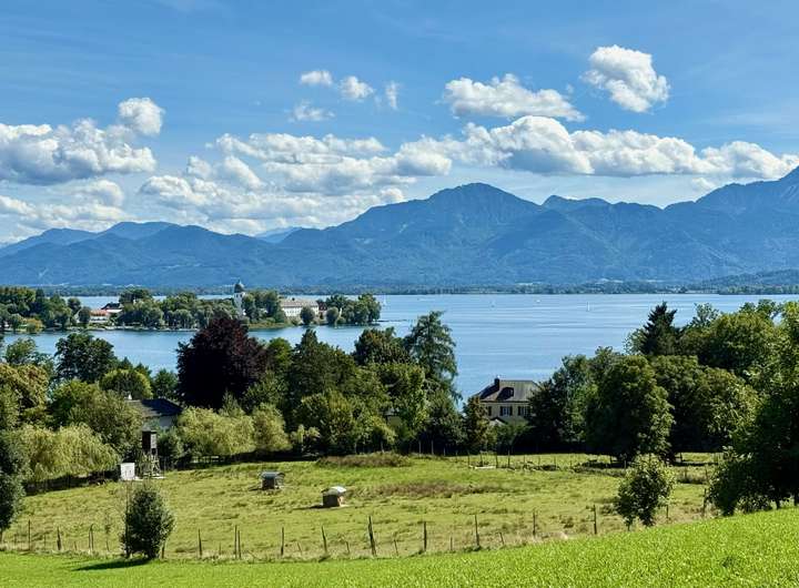 Das Grundstück verfügt über eine sonnige Süd-/West-Ausrichtung sowie einen schönen Blick Richtung der Chiemgauer Alpen.