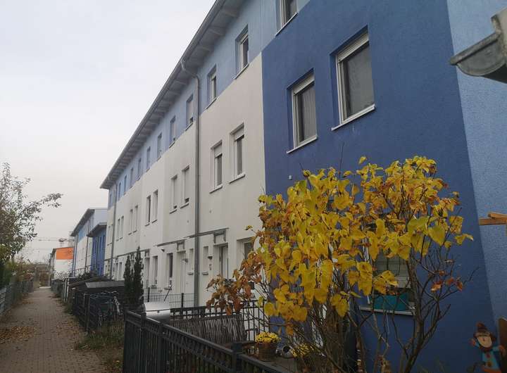 Das Haus mit Garten und Terrasse liegt zurückversetzt in einer verkehrsberuhigten Zone ohne direkten KFZ Verkehr. Es ist Teil der Wohnanlage "Leonhardspark" auf dem ehemaligen Schlachthofgelände.