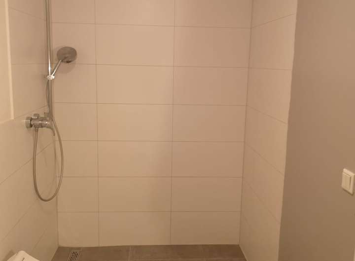 Fussbodenheizung mit großformatigen Fliesen in Betonoptik im EG (Obergeschosse und Keller mit Heizkörpern - Fernwärme).