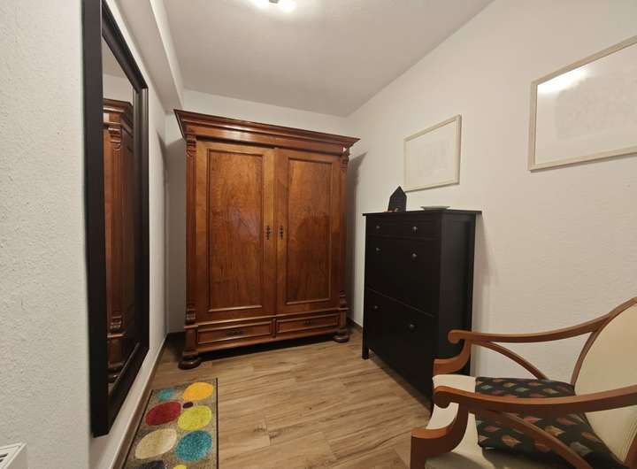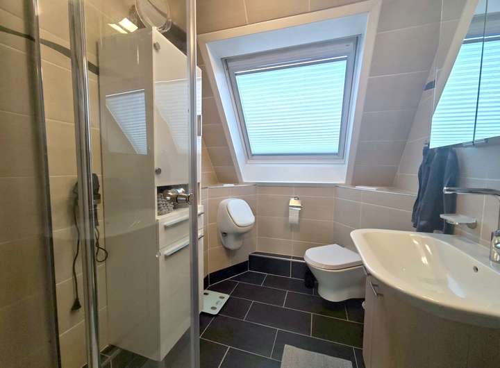 Im darüber befindlichen Dachgeschoss befindet sich eine 3-Zi.-Wohnung nebst West-Balkon mit einer Wohnfläche von ca. 72 m². Auch hier profitieren Sie von einem modern eingerichteten Bad und einer gepflegten Einbauküche. Durch die nach Süden ausgerichtete Dachgaube, welche auch das Einrichten und Dekorieren erleichtert, erhellen Sonnenstrahlen in Hülle und Fülle Wohn- und Schlafzimmer.