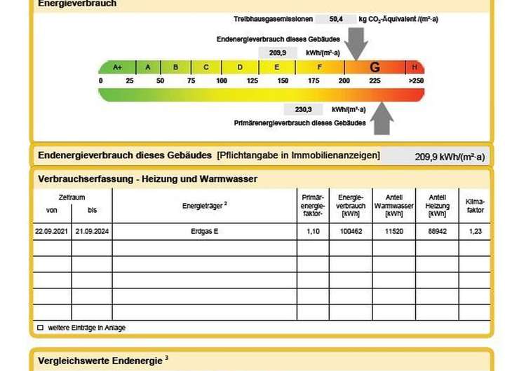 Energieausweis liegt vor und ist angefügt. Endenergieverbrauch 209,9 kWh/(m²·a).