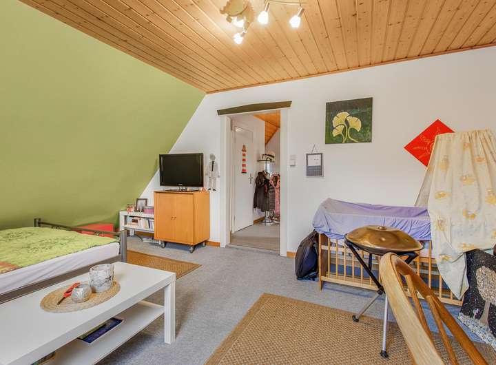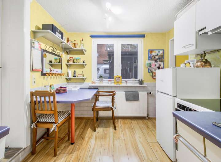 Diese Immobilie ist perfekt für eine kleine Familie, die sich nach einem Zuhause in ruhiger Wohnlage mit Garten sehnt. Die derzeitigen Eigentümer haben die Immobilie stetig in einem sehr gepflegten Zustand gehalten und im Laufe der Zeit diverse Modernisierungen durchgeführt, so dass der nächste Eigentümer unkompliziert einziehen kann. Das Erdgeschoss umfasst ein klassisch geschnittenes Wohnzimmer, die Küche, ein Schlafzimmer sowie ein Vollbad mit Fenster. Das Dachgeschoss bietet Platz für zwei Schlafzimmer und einen Abstellraum.