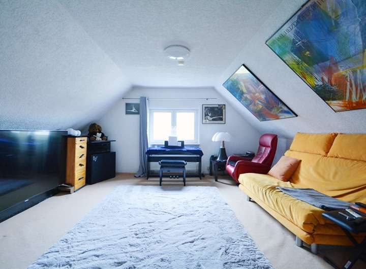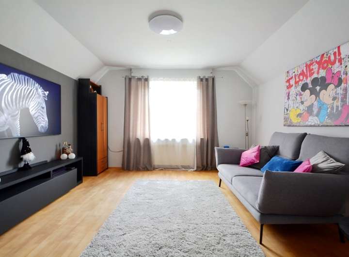 Das Haus befindet sich auf einem ca. 510 m² großen Grundstück (Änderung des aktuellen Schnitts geplant.) und wurde ca. 1988 um eine gemauerte Garage sowie einem überdachten Freisitz in ca. 1997 erweitert. Die Wohnfläche misst ca. 150 m² und ist im Erdgeschoss in ein geräumiges Wohnzimmer mit einer sich direkt anschließenden, offenen Küche und Essbereich, der auch einen Zugang zu einer kleinen Terrasse mit Grünfläche bietet, aufgeteilt. Zudem sind ein gut geschnittenes Schlafzimmer mit viel Platz für ein Doppelbett und Kleiderschrank und ein weiteres Zimmer vorhanden. Das helle, große Tageslichtbad mit Fußbodenheizung und Handtuchheizkörper, hält eine großzügige, bodentiefe Dusche, eine Badewanne, Pissoir, WC und ein Waschbecken bereit. Außerdem stehen ein Hauswirtschaftsraum mit Waschmaschinenanschluss und ein praktischer Abstellraum (vormals Gäste - WC, Anschlüsse vorhanden) zur Verfügung. Folgt man der Holztreppe in das voll ausgebaute Dachgeschoss, finden sich hier zweit geräumige Kinderzimmer und ein Arbeitszimmer als Durchgangszimmer wieder. Der Keller ist gefliest und neben dem Hausanschluss bzw. Heizungskeller auch als Hobbyraum nutzbar.