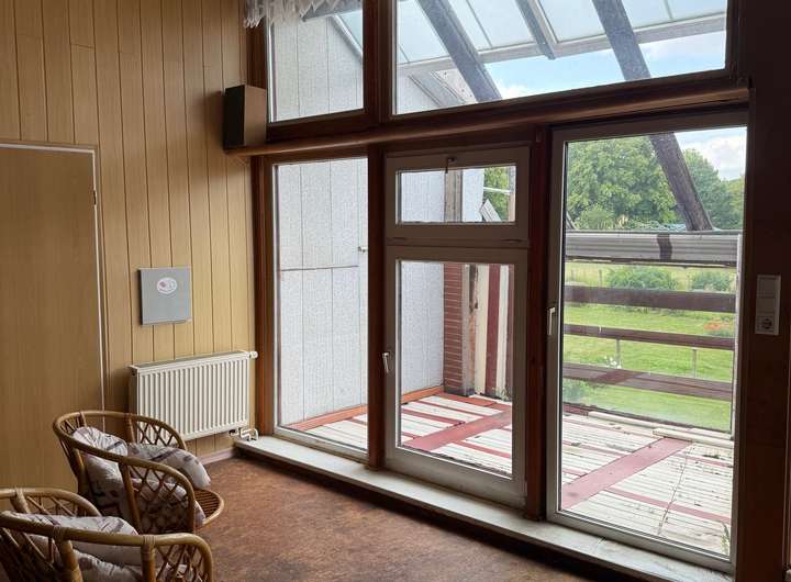 Im Erdgeschoss befindet sich unter anderem ein großer Hobbyraum, der vielfältig genutzt werden kann – ob als Werkstatt, Spielzimmer oder Kreativbereich. Im Obergeschoss erwartet Sie ein heller Wintergarten mit herrlichem Blick auf den angrenzenden Wald – ein idealer Rückzugsort zum Entspannen.