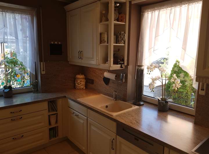 Eine ausgestattete neuwertige Einbauküche mit Kühlschrank, Geschirrspüler, Ceranfeld, Backofen, Abzugshaube nach außen ist vorhanden. Ein Keller bietet zusätzlichen Stauraum. Haustiere sind nach Absprache erlaubt. Das Haus ist ab dem 02.01.2026 verfügbar.
