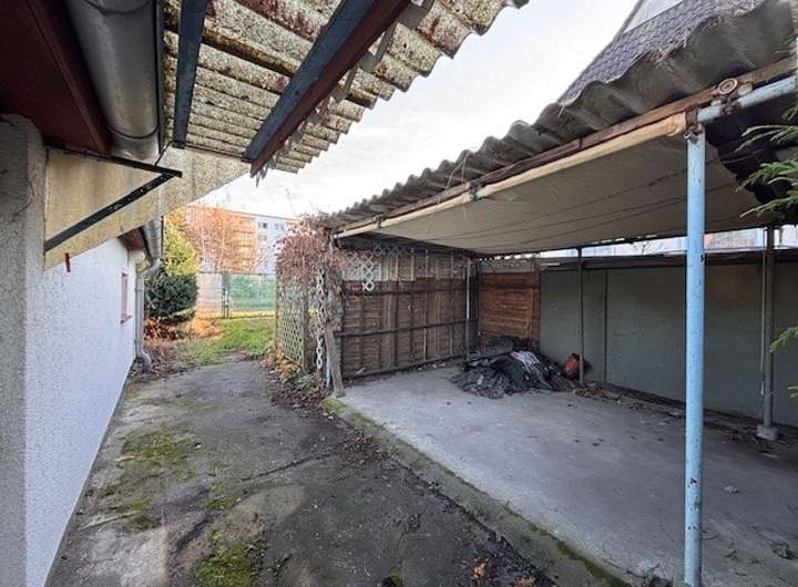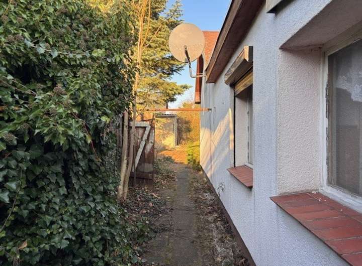 Das Haus aus den 30er Jahren mit Anbau ist nicht mehr bewohnbar und hat eine Fläche von ca. 72 m². Auch die Nebengebäude auf der rechten Grundstücksseite, links vom Haus, sollten entfernt werden.