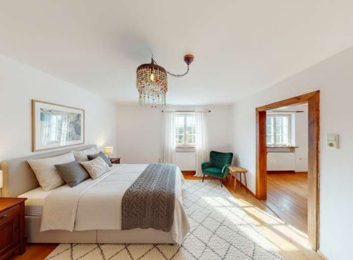 Dieses charmante, renovierte Haus mit ca. 197 m² Wohnfläche und ca. 300 m² Grundstücksfläche befindet sich in Markt Einersheim. Das Objekt aus dem Jahr 1792 wurde mit normaler Ausstattungsqualität renoviert und bietet mit 7 Zimmern und 2 Badezimmern viel Platz für eine Familie oder für Wohnen und Arbeiten unter einem Dach. Ein Gäste-WC ist ebenfalls vorhanden. Das wird mit einer modernen Öl, Zentralheizung und zwei Kaminöfen beheizt. Dieses Haus vereint historischen Charme mit modernem Wohnkomfort.