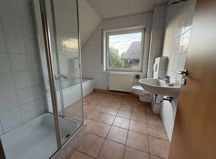 + Badezimmer mit Dusche, Wanne, Waschbecken und WC