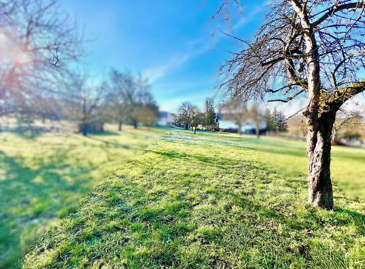 Nur wenige Schritte vom Grundstück entfernt starten weitläufige Felder und Wiesen, die zu schönen Spaziergängen einladen. Auch Sportbegeisterte finden hier perfekte Voraussetzungen für Aktivitäten an der frischen Luft – ob Laufen, Radfahren oder einfach entspanntes Abschalten im Grünen. Für Kinder bietet die naturnahe Umgebung ideale Bedingungen zum Spielen, Entdecken und Draußen-Sein.