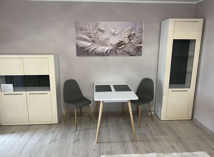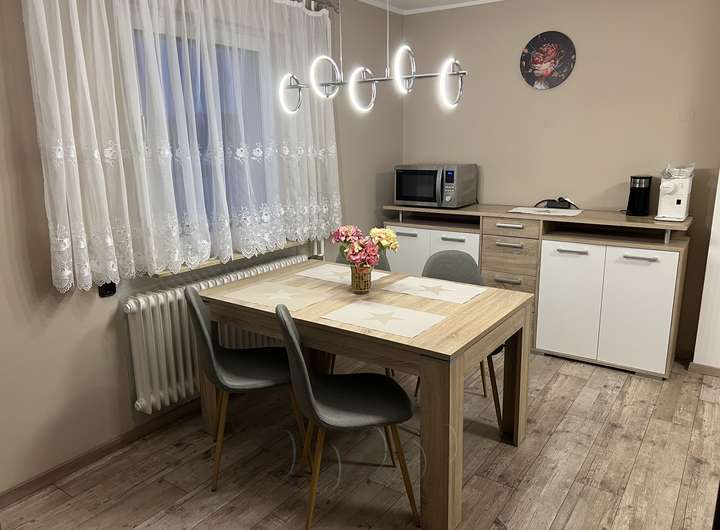 Das Haus wird so vermietet, wie es sich jetzt befindet, also vollständig möbliert. Die Möbel sind in neuwertigem Zustand.