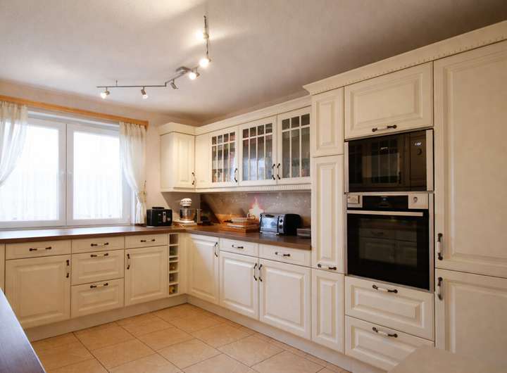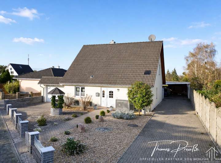 Die Einbauküche im charmanten Landhausstil fügt sich harmonisch in das moderne Raumkonzept ein. Zusätzlich verfügt die Immobilie über ein Balkonkraftwerk mit 1,6 kWp, das zur nachhaltigen Energieerzeugung beiträgt. Eine Garage, ein Carport mit Platz für zwei Fahrzeuge sowie ein praktisches Gartenhaus runden das Angebot ab.