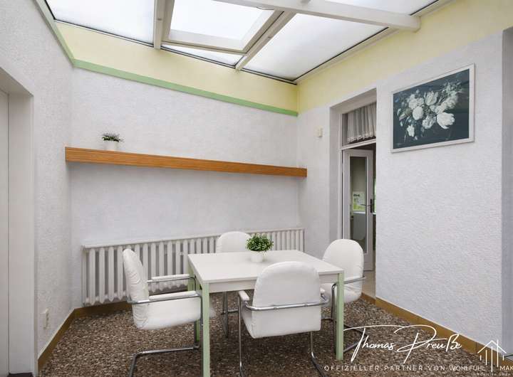 Das Haus verfügt über insgesamt fünf helle Zimmer, die dank der großen Fensterflächen ein freundliches und offenes Raumgefühl schaffen. Auch ein großzügiger Wintergarten ist direkt vom Wohnhaus aus erreichbar. 1998 wurden umfangreiche Modernisierungen durchgeführt, darunter die Erneuerung der Elektrik, der Fenster, der Fassade mit 80 Millimeter Dämmung, der Dacheindeckung sowie des Badezimmers im Dachgeschoss.