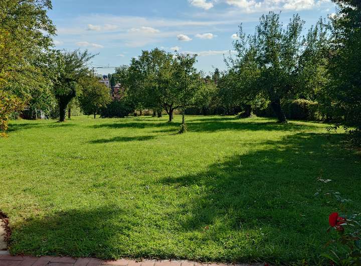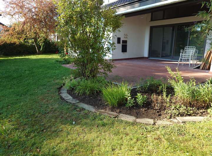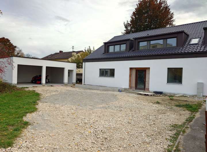 Das Haus ist Nord- Süd orientiert und weist neben einer teils überdachten Süd- Terrasse einen weiteren gemütlichen Außensitzbereich im großen Innenhof auf. Zum Haus gehört eine große Doppelgarage mit zusätzlichem Stellplatz für Fahrräder und einer großzügigen Hofeinfahrt mit Vorgarten. Das Grundstück grenzt im Süden an eine Streuobstwiese an. Außenanlagen, Hofeinfahrt und zum Teil die Sanitäranlagen befinden sich aktuell noch im Umbau und sind deshalb noch nicht auf den Fotos dargestellt.