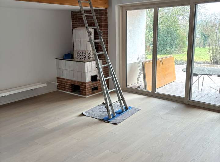 Fußbodenheizung, Eichenparkett, hochwertige Fliesenbeläge, Holzofenkamin, 2 Terrassen, neue Sanitärausstattung, schnelles Internet über Kabel (1000 MBit/s), elektrische Rollläden