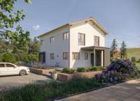 Stellen Sie sich vor: Sie sitzen mit Ihrer Familie an einem Sonntagmorgen mit Ihrer Familie am Frühstückstisch, erfreuen sich an Ihrem Ausblick ins Grüne und genießen die frischen Brötchen. Dieser Traum kann schon im nächsten Jahr für Sie und Ihre Familie Wirklichkeit werden - wenn Sie jetzt den ersten Schritt in Richtung eigenes Haus gehen! Dieses behagliche Einfamilienhaus bietet Ihnen alle Annehmlichkeiten des modernen und entspannten Wohnens! Der große offene Wohn-, Koch- und Essbereich ist der schönste Familientreffpunkt zum Reden, Spielen, Feiern und Entspannen. Durch die Form dieses Raumes ist der Wohnbereich optisch von der Küche getrennt. Für Ihr Homeoffice oder ein 3. Kinderzimmer steht ein separater Raum im Erdgeschoss zur Verfügung. Im Obergeschoss freuen sich Mama und Papa über ein behagliches Schlafzimmer mit separatem Ankleideraum. Beide Kinder sind begeistert von ihrem eigenen kleinen Reich. Dazu gibt es ein modernes Familienbad mit Badewanne und bodentiefer Dusche. Sie möchten die Grundrisse nach Ihren eigenen Ideen verändern? Wenn technisch umsetzbar, dann ist hier vieles möglich - sprechen Sie mit uns!