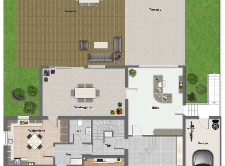 Wintergarten ca. 29 m² mit Zugang zur ca. 144 m² großen Terrasse