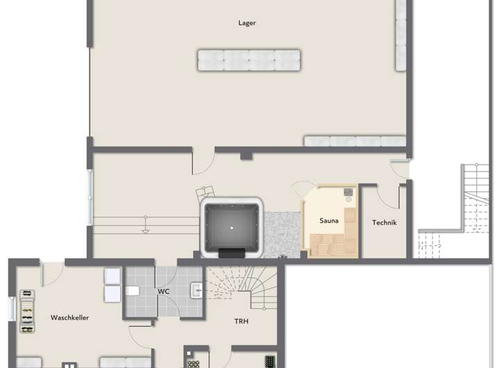 Große Lagerfläche im Kellergeschoss