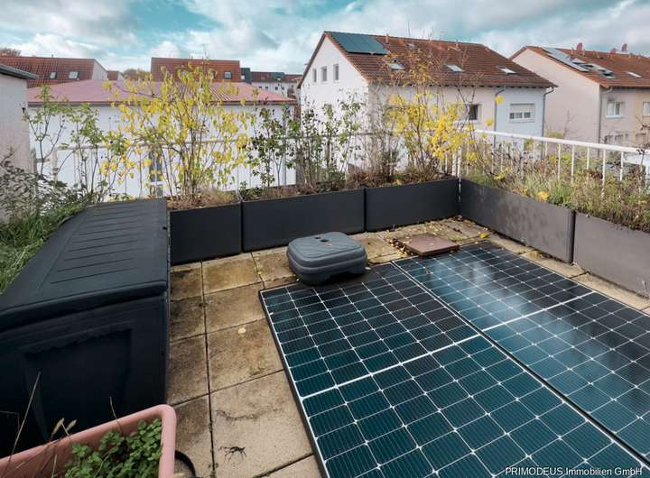 - Dachterrasse mit Betonplattenbelag und Geländer (Süd-West-Ausrichtung)