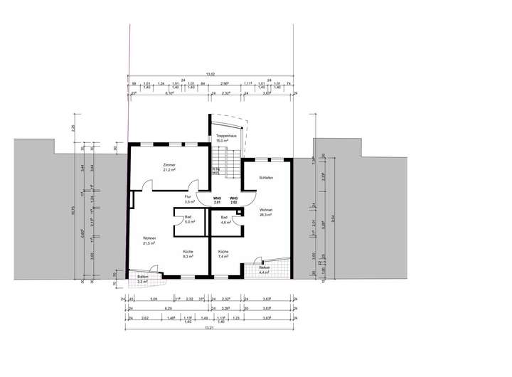 - Wohneinheit 2. OG links: ca. 42,50 m² Wohnfläche