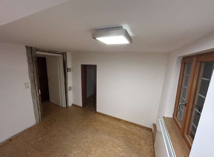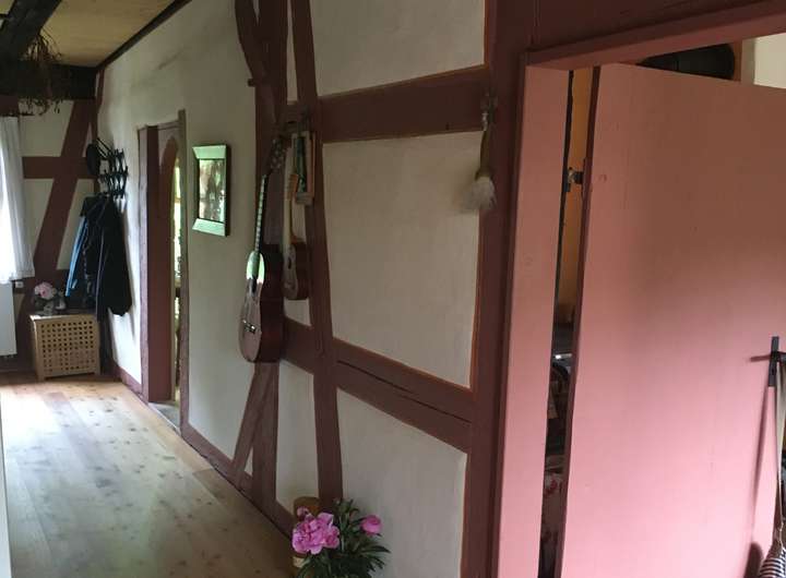 Das 1534 errichtete, beeindruckende Fachwerkhaus in sehr ruhiger Randlage, bietet viel Platz für Kreativität, Rückzug und ein schönes zu Hause im Grünen. Das Gebäude wurde zwischen 2005 und 2013 vollständig kernsaniert. Die Gebäudetechnik (Heizung, Wasser, Abwasser, Strom) wurde dabei vollständig erneuert und entspricht aktuellem Standard. Auch die Gaszentralheizung entspricht aktuellen Standards. Die großzügige Wohnung im Obergeschoss und Dachgeschoss des ehrwürdigen Gebäudes, wartet mit jede Menge Einzigartigkeiten auf: Die große Einbauküche mit Holzofen und einer urgemütlichen Sitzecke, die historische Stube mit Holzbalkendecke und rekonstruierter Fensterfront mit bautypischen Schiebläden, bauzeitliche Malereien an den Wänden und einem großen Chillout-Area im Dachgeschoss, flankiert von zwei weiteren Zimmern und einem zusätzlichen Badezimmer. Die Wohnfläche beträgt hier über 200 m², aufgeteilt auf sechs Zimmer, zwei Badezimmer, eine Küche und einen großen Wohnflur.