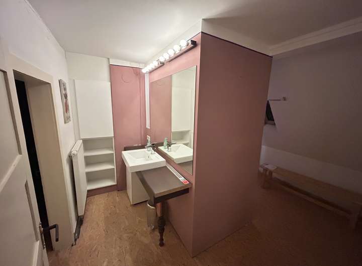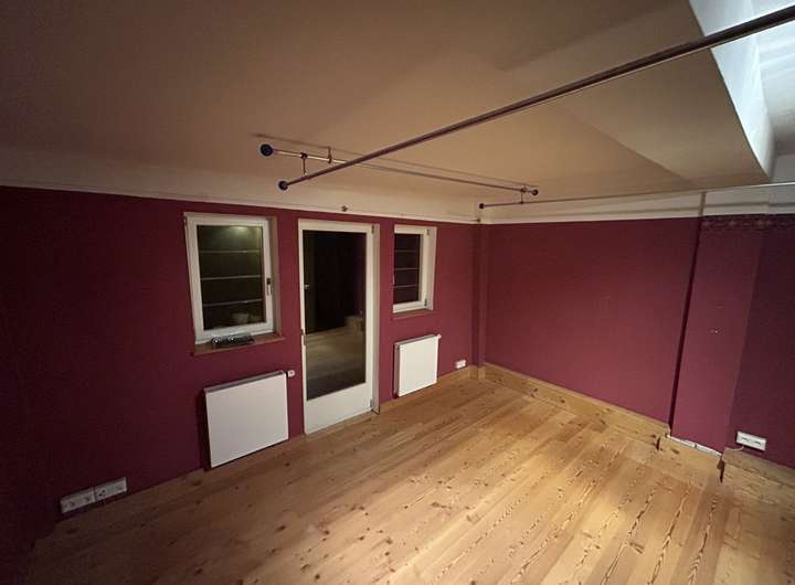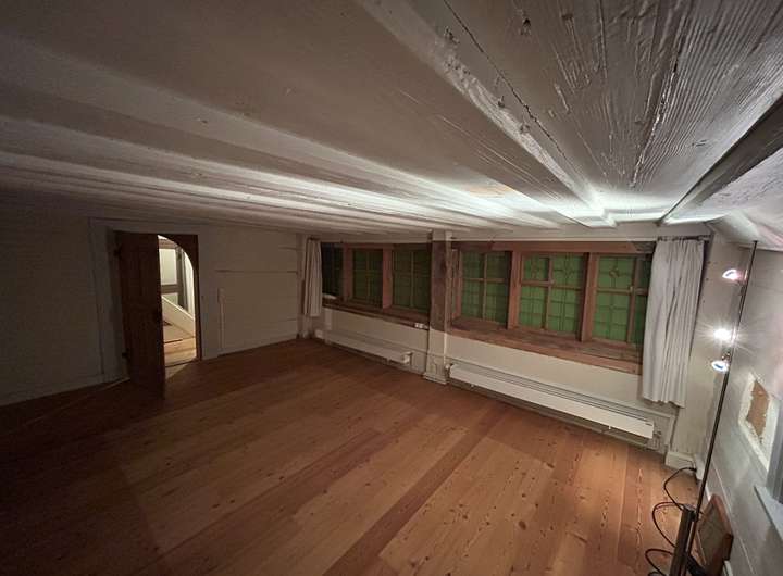 Die Wohnung hat im ersten Obergeschoss direkten Anschluss an eine, noch nicht ausgebaute große Terrasse mit über 30 m². Der Terrassenbelag ist allerdings noch nicht hergestellt, kann aber nach Absprache mieterseitig hergestellt werden. Die Wohnbereich im Erdgeschoss umfasst zirka 48 Quadratmeter, ist separat abgetrennt und kann als Wohnfläche, oder als Bürofläche für eine eigene kleine Büronutzung o.ä. genutzt werden. Der Bereich verfügt über eine eigene kleine Küche und ein modernes Duschbad. Aus einer früheren Büronutzung ist eine CAT-Verkabelung und ein Switch noch eingebaut und bietet 12-Duplex-Anschlüsse für Netzwerk und Telefonie. Ein bauzeitlicher Gewölbekeller von 1534 und ein, daran angegliederter kleiner Flachkeller bieten Platz für Lagerung feuchteunempfindlicher Güter. Ein Gartenteil ist der Nutzeinheit zugeordnet und kann je nach Belieben bis zu 220,00 Quadratmeter in dem weitläufigen Grundstück ausgewiesen werden. Zur Wohnung gehört ein PKW-Stellplatz für 15 € pro Monat.