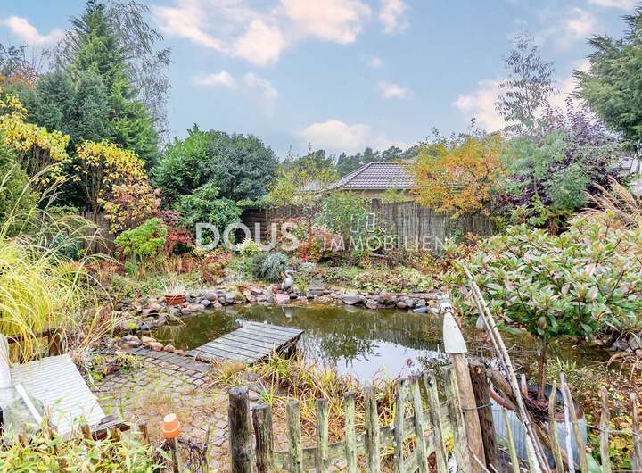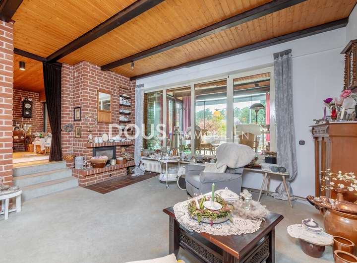 Besonderes Highlight ist der wunderschöne Wintergarten, der zu jeder Jahreszeit zum Verweilen einlädt und einen herrlichen Blick in den liebevoll angelegten Garten bietet. Der Außenbereich überzeugt mit einem großen Teich samt kleinem Bachlauf – ein Rückzugsort für Naturliebhaber und Ruhesuchende. Im Inneren sorgt der eingebaute Kamin für gemütliche Abende, während der beheizte Vollkeller vielfältige Nutzungsmöglichkeiten eröffnet.