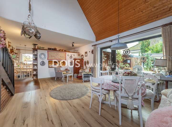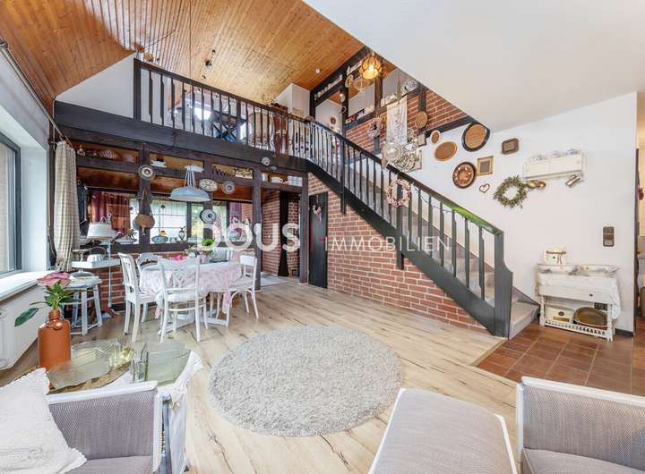 Dieses charmante Einfamilienhaus aus dem Jahr 1980 präsentiert sich als gepflegte und architektonisch ansprechende Immobilie mit einer Wohnfläche von rund 170 m² sowie zusätzlichen ca. 75 m² Nutzfläche. Bereits beim Betreten spürt man den besonderen Charakter des Hauses, das durch den individuellen Baustil eines Architektenhauses besticht. Großzügig geschnittene Räume, ein offener Grundriss und zahlreiche Fensterflächen verleihen der Immobilie ein helles und einladendes Wohnambiente.