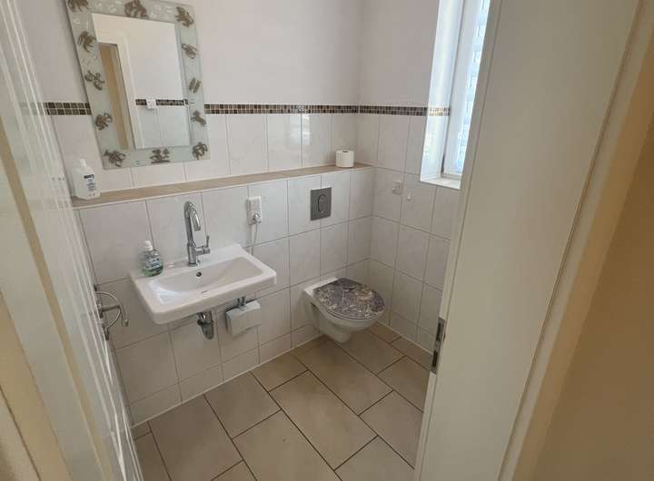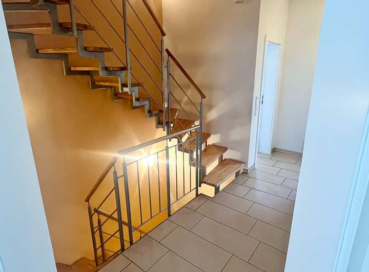 Alle Böden gefliest oder Holzparkett. Der Keller ist mit normaler Raumhöhe 2,45 m und ebenfalls komplett gefliest, Kellerraum 2 kann als Waschküche verwendet werden (Podest für
