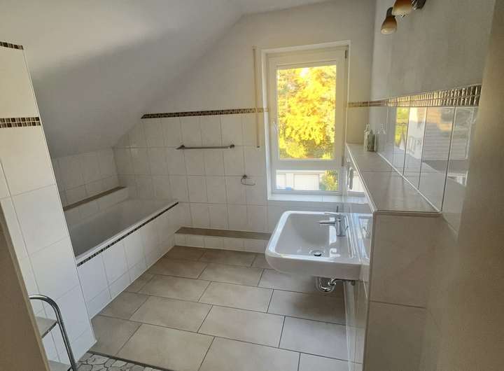 über 2 komplette Badezimmer und ein Gäste-WC (OG Bad mit Dusche und Badewanne). Im EG eine Einbauküche.