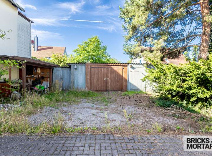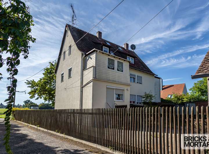 Das Grundstück liegt in einer ruhigen Nebenstraße, direkt neben unverbauten Feldern.